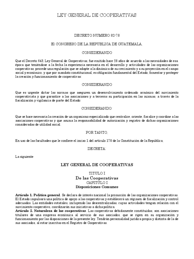 Que el Decreto 643, Ley General de Cooperativas, fue emitido hace 28 años de acuerdo a las necesidades de esa