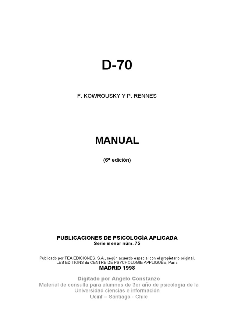 El D-70 se ha tipificado sobre una muestra española de escolares y profesionales.