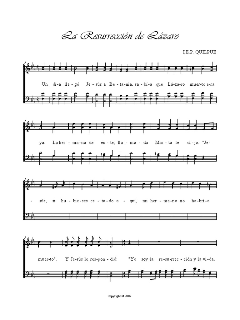 - ñor: "Han pa - sa - do cua - tro dí - as ya". Y Je - sús le res - pon - dió: