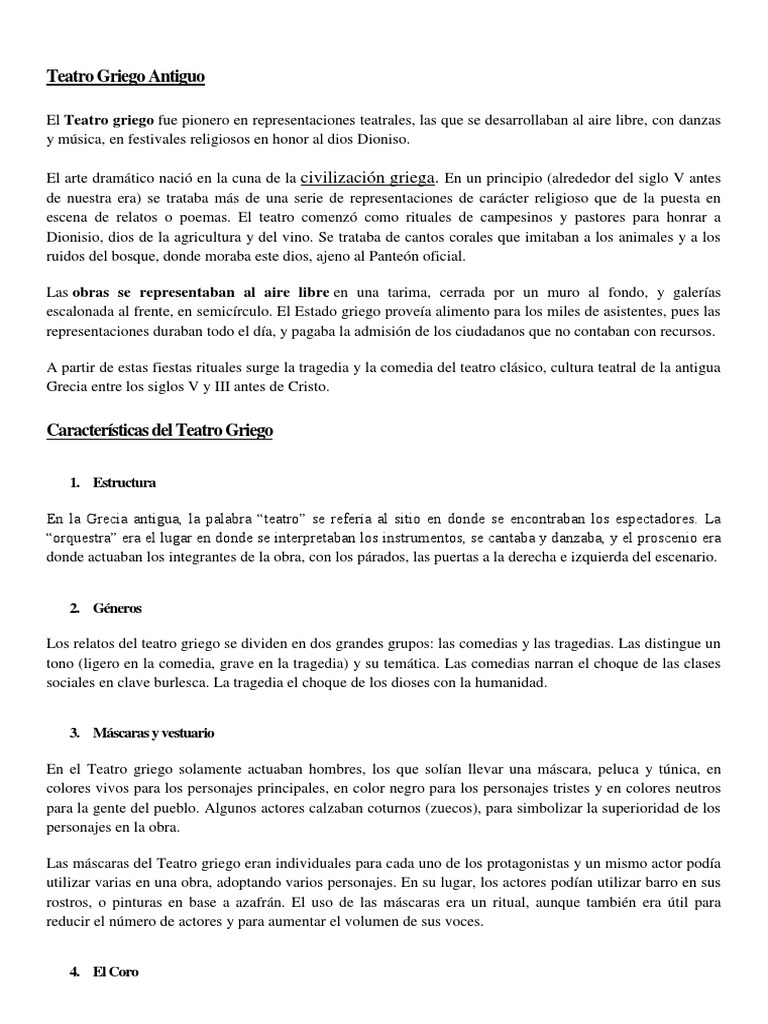 y música, en festivales religiosos en honor al dios Dioniso.