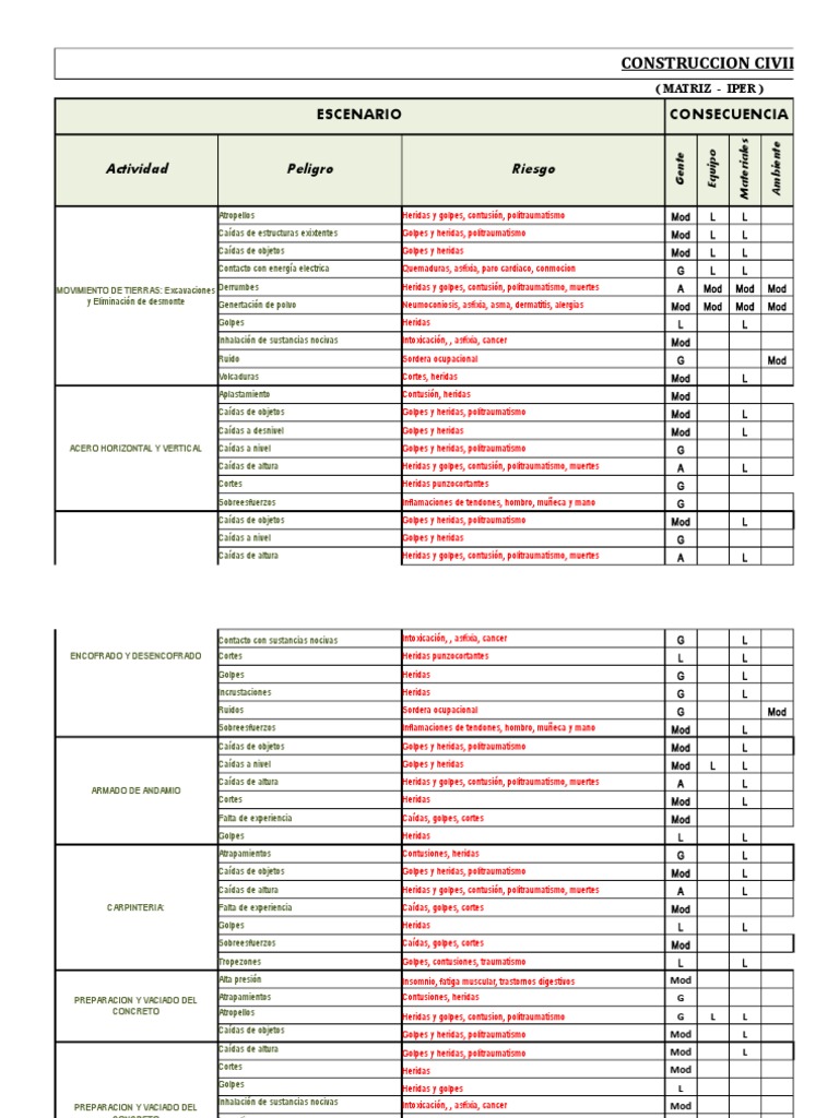 MOVIMIENTO DE TIERRAS: Excavaciones Derrumbes Heridas y golpes, contusión, politraumatismo, muertes A Mod Mod Mod