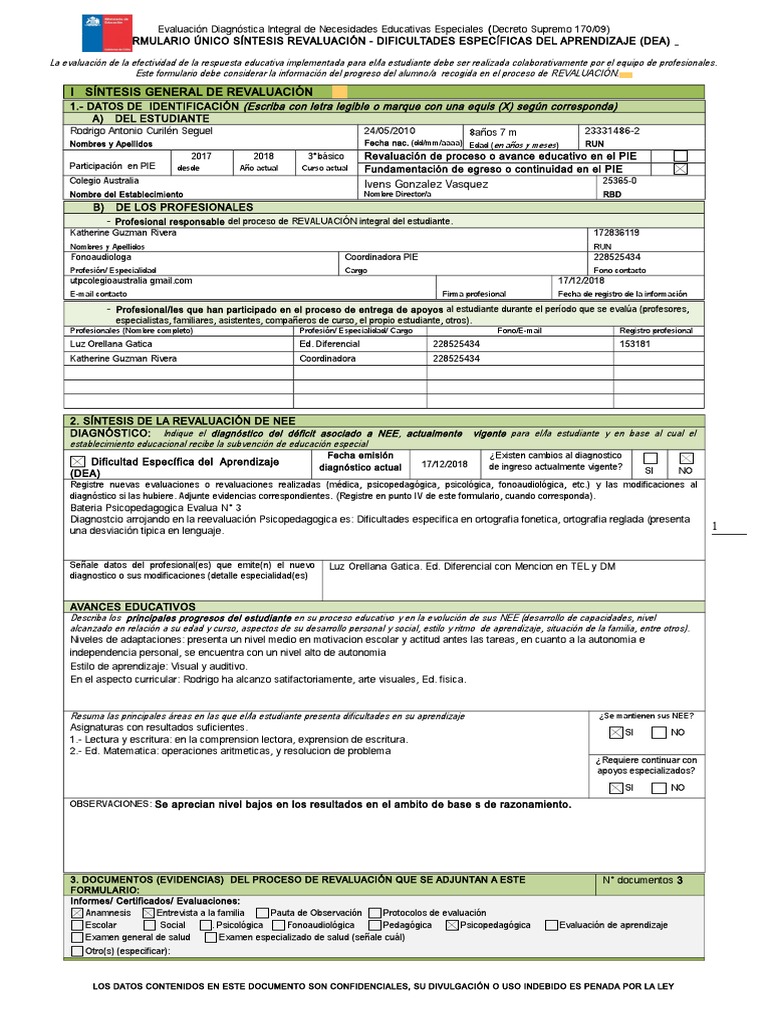 Evaluación Diagnóstica Integral de Necesidades Educativas Especiales (Decreto Supremo 170/09)