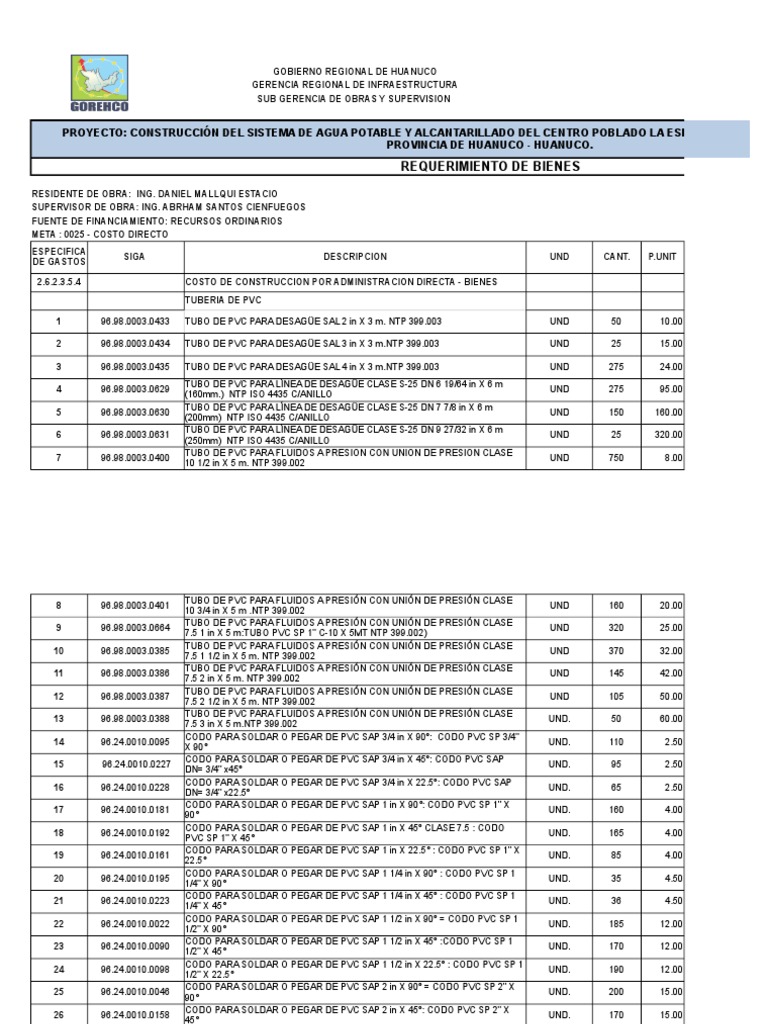 SUB GERENCIA DE OBRAS Y SUPERVISION