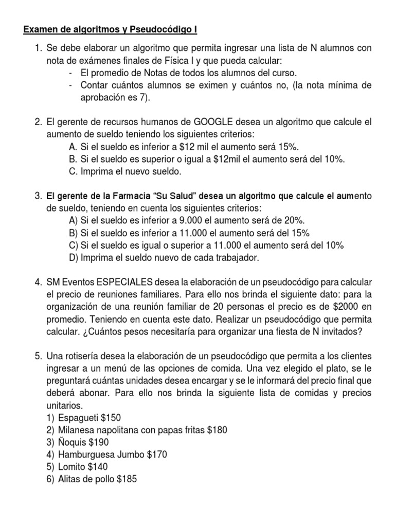Examen de algoritmos y Pseudocódigo I