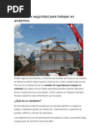 Este documento trata sobre los aspectos preventivos del montaje, utilización y desmontaje de andamios tubulares. Explica los objetivos del manual, que son proporcionar información sobre la normativa aplicable a los andamios, los riesgos asociados a su uso, y las recomendaciones para realizar los trabajos de forma segura. Asimismo, describe los diferentes tipos de andamios tubulares apoyados, sus componentes, y ofrece procedimientos para el montaje y desmontaje seguros.