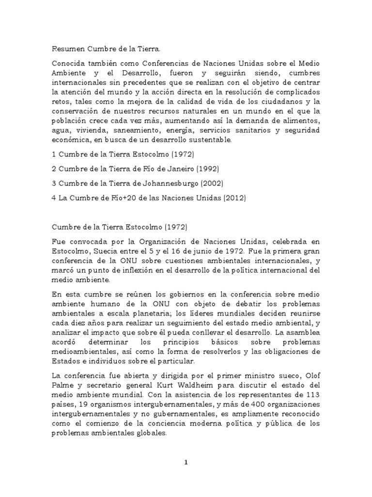 Resumen Cumbre de la Tierra.