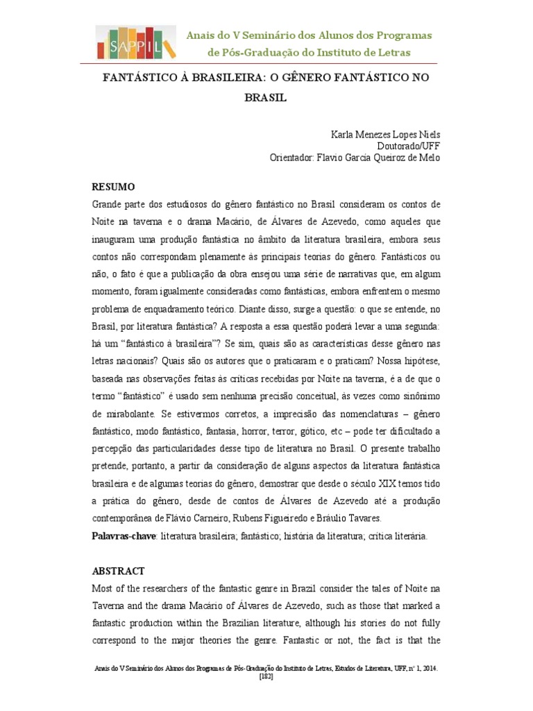 Keywords: Brazilian literature; fantastic; history of literature; critical literary.