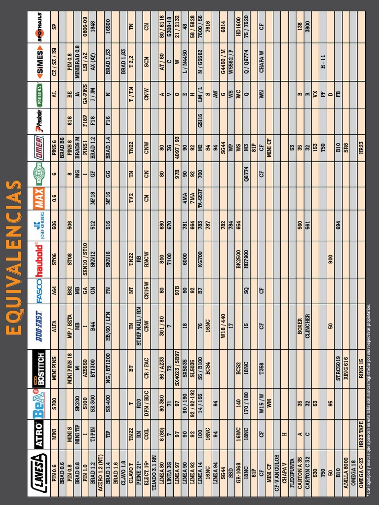 * Los logotipos y marcas que aparecen en esta tabla son marcas registradas por sus respectivos propietarios.
