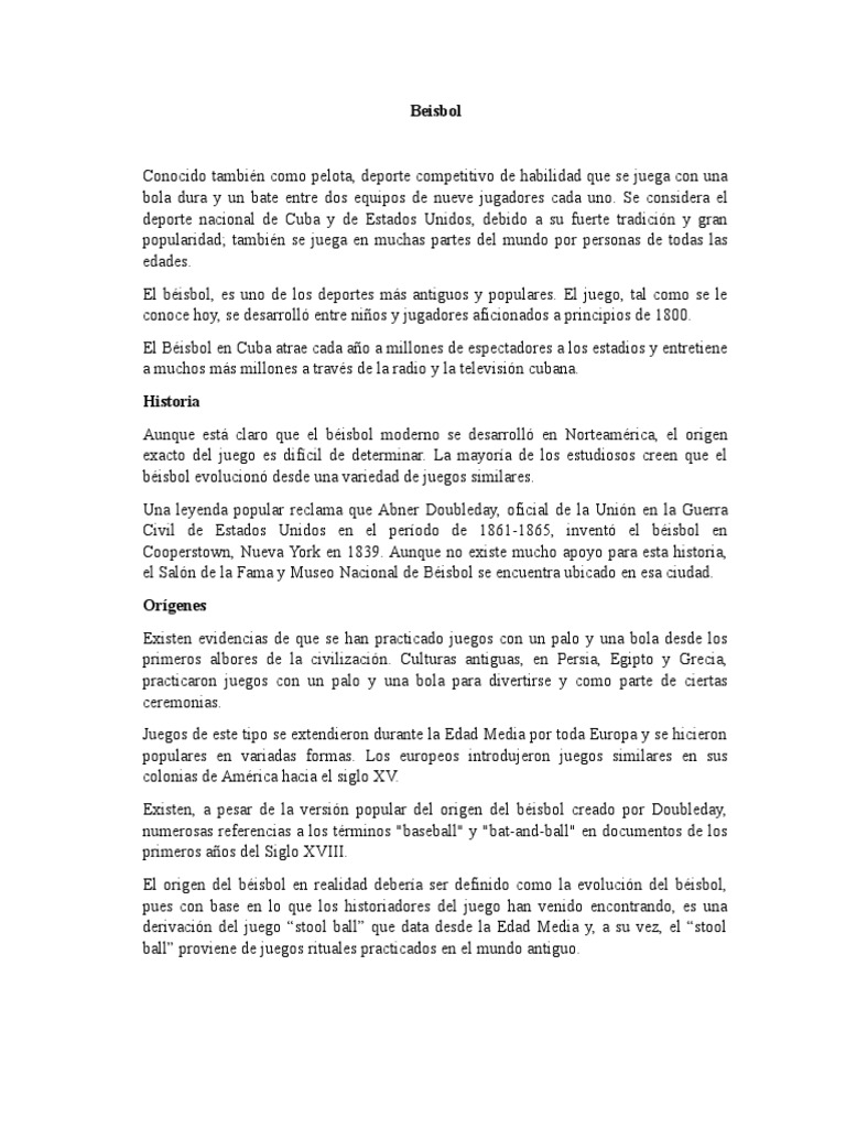 El origen del béisbol en realidad debería ser definido como la evolución del béisbol,
