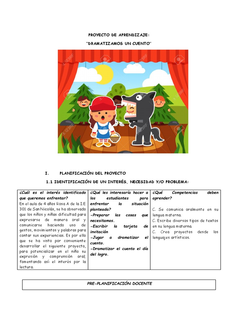 Jugar a dramatizar el cuento. Leer el cuento nuevamente. Cuento que se va a producir,