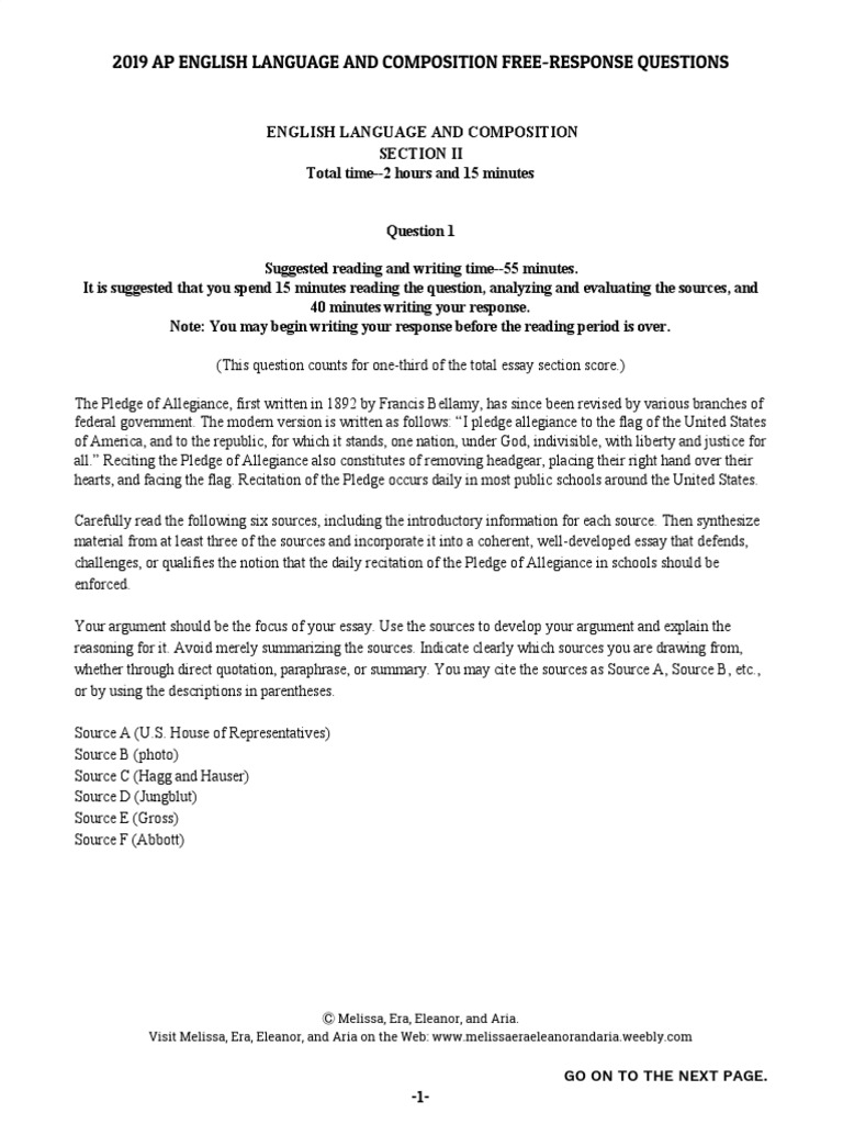 whether through direct quotation, paraphrase, or summary. You may cite the sources as Source A, Source B, etc.,