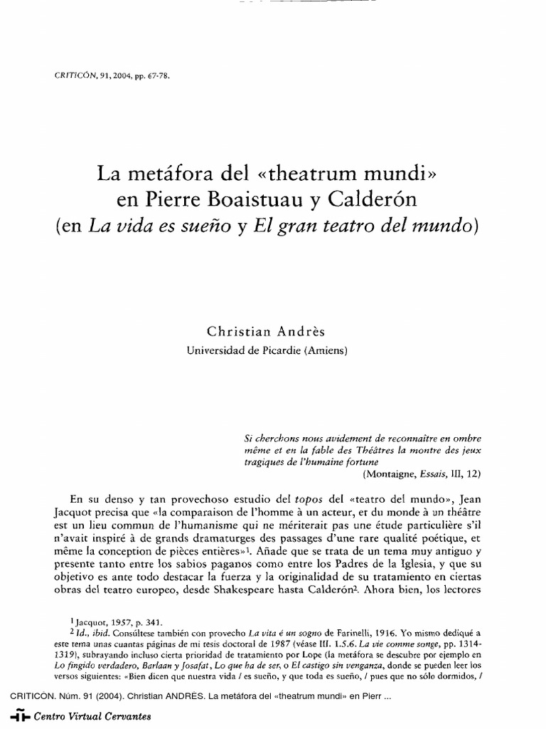 CRITICÓN. Núm. 91 (2004). Christian ANDRÉS. La metáfora del «theatrum mundi» en Pierr ...