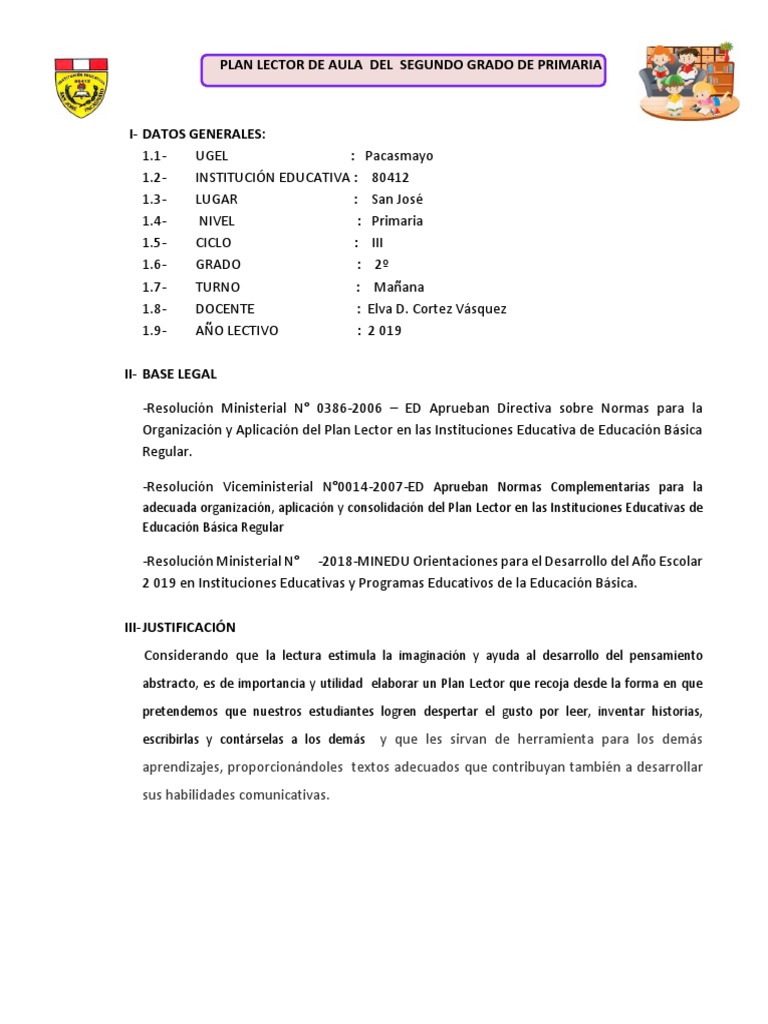 abstracto, es de importancia y utilidad elaborar un Plan Lector que recoja desde la forma en que