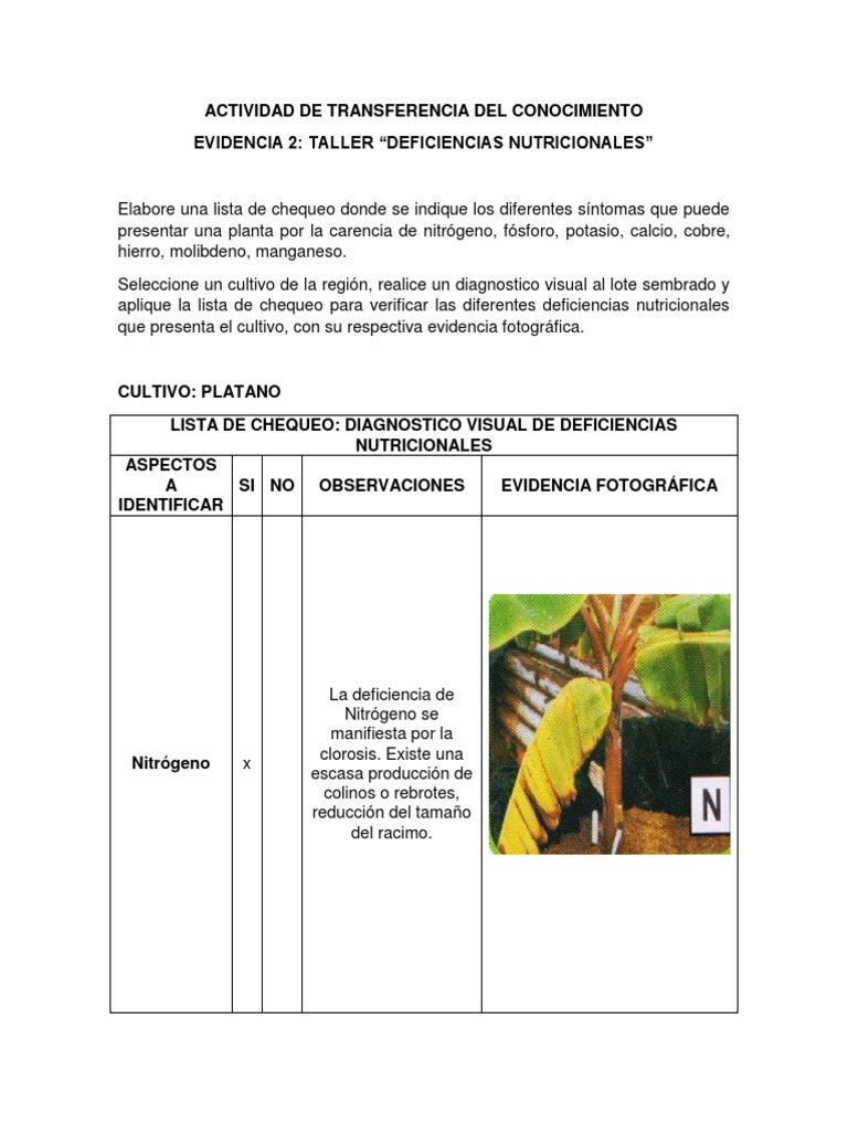 EVIDENCIA 2: TALLER “DEFICIENCIAS NUTRICIONALES”