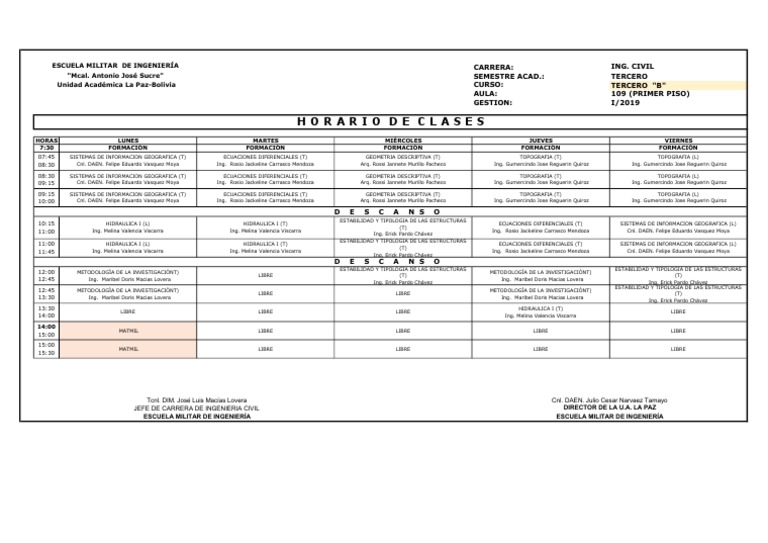 08:30 SISTEMAS DE INFORMACION GEOGRAFICA (T) ECUACIONES DIFERENCIALES (T) GEOMETRIA DESCRIPTIVA (T) TOPOGRAFIA (T) TOPOGRAFIA (L)