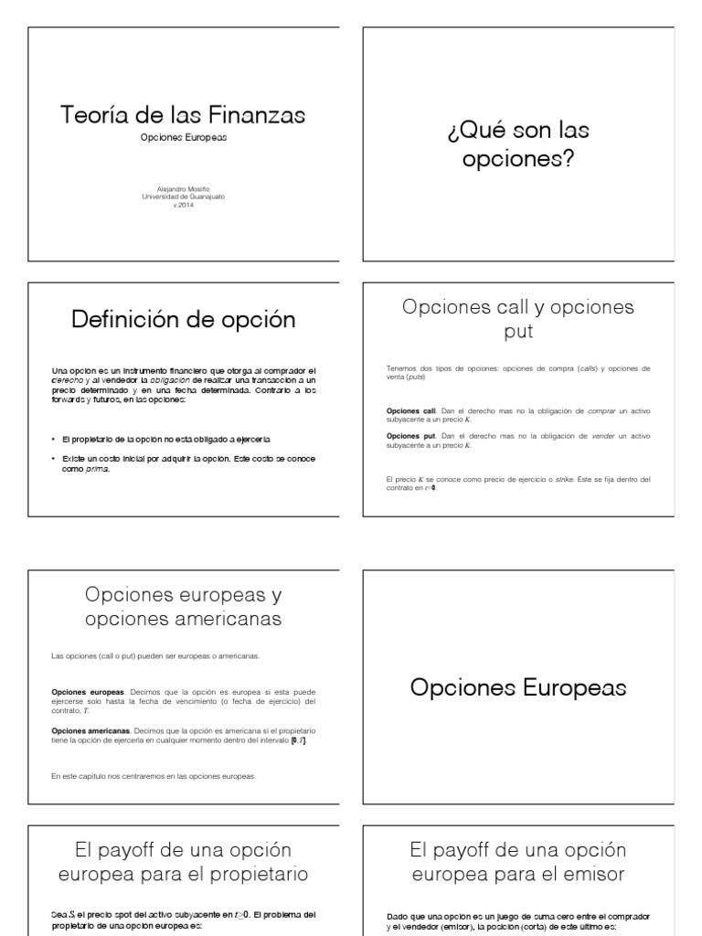 • Sea βt el valor del activo sin riesgo en t. Entonces, $1 en t=0 vale: • Finalmente, suponemos que existen opciones europeas