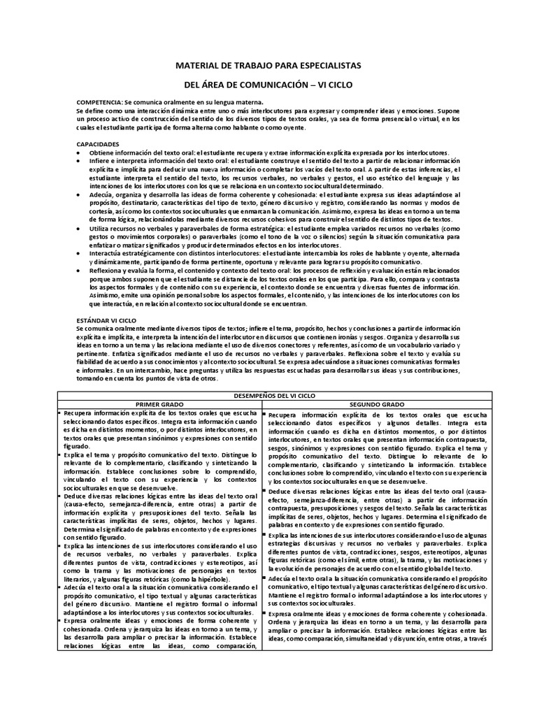 DEL ÁREA DE COMUNICACIÓN – VI CICLO