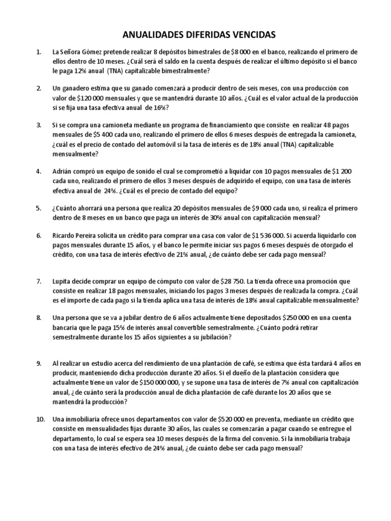 ANUALIDADES DIFERIDAS VENCIDAS