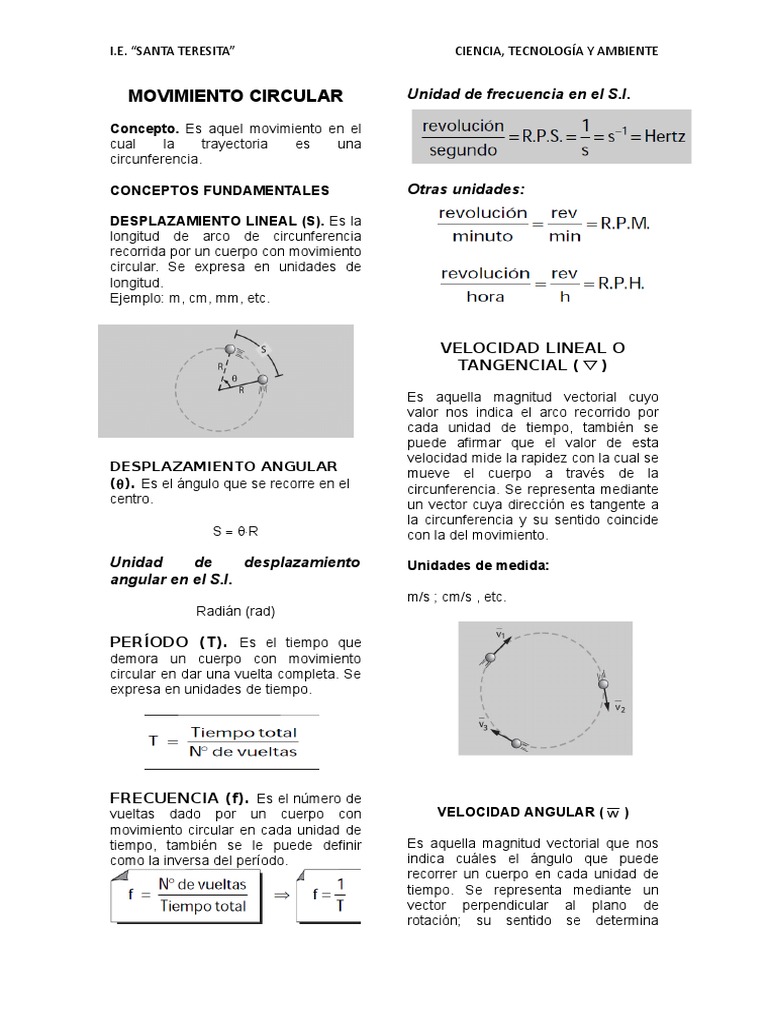 FORMULAS QUE RIGEN EN 2. Una partícula con MCU. Describe un