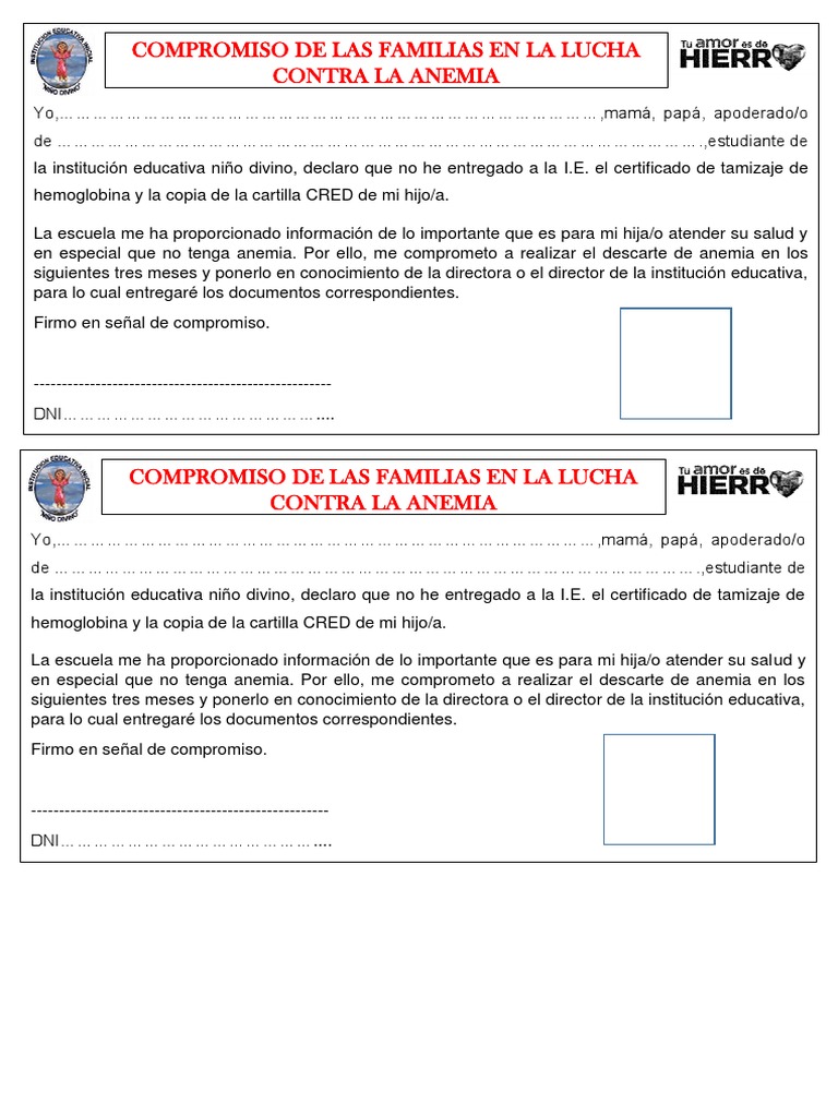 en especial que no tenga anemia. Por ello, me comprometo a realizar el descarte de anemia en los