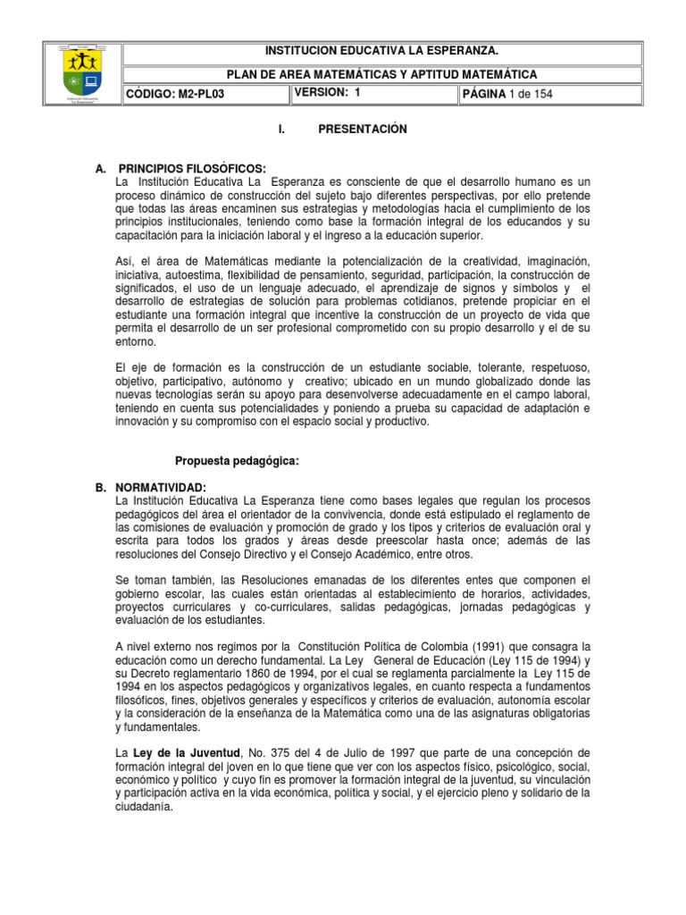 La Institución Educativa La Esperanza tiene como bases legales que regulan los procesos