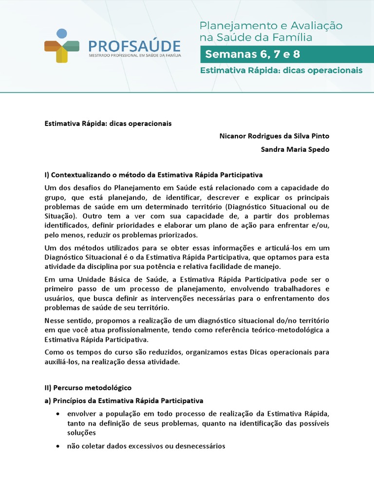 I) Contextualizando o método da Estimativa Rápida Participativa