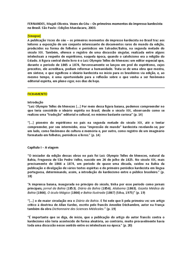 portuguesa, determinando, assim, a introdução do kardecismo entre o público brasileiro.” (p.
