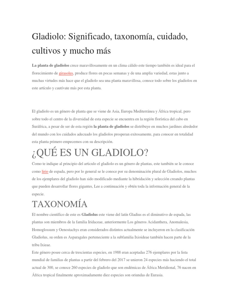 del mundo con los cuidados adecuado los gladiolos prosperan exitosamente, para conocer en totalidad