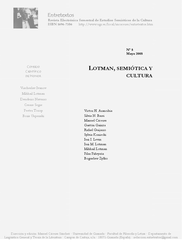 Entretextos. Revista Electrónica Semestral de Estudios Semióticos de la Cultura [Lotman, semiótica y cultura] Nº 5
