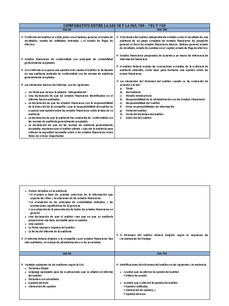 Comparativa SAS 58 y NIA 700-710