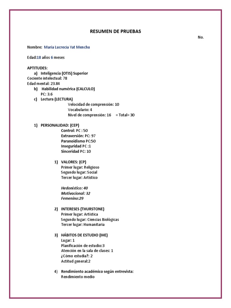 Sinceridad (expresión libre, sin fingimiento al responder la prueba):