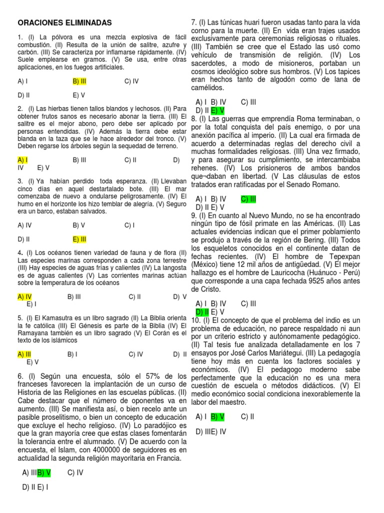 5. (I) El Kamasutra es un libro sagrado (II) La Biblia orienta 10. (I) El concepto de que el problema del indio es un