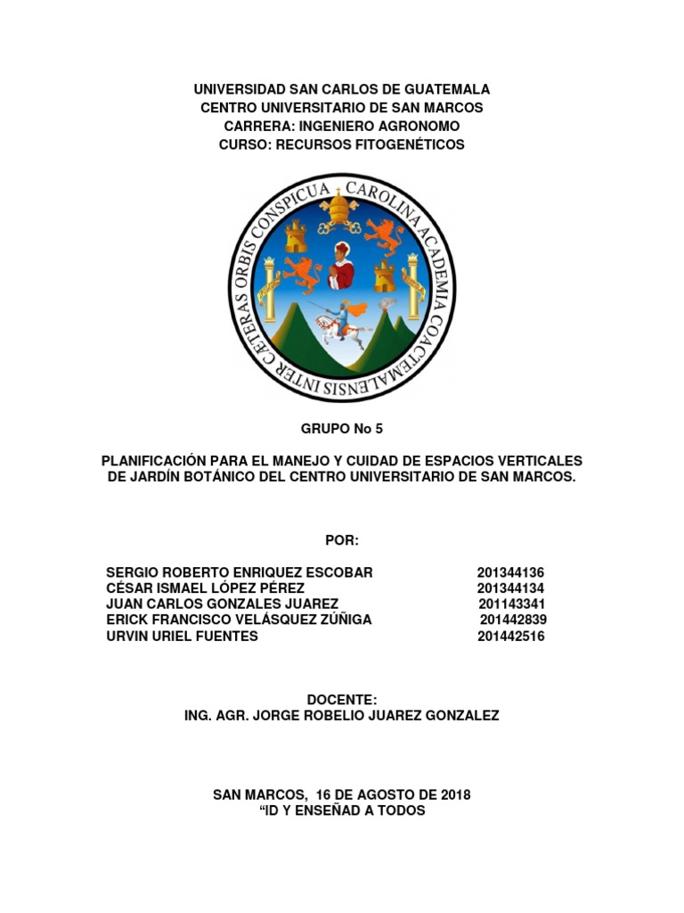 DE JARDÍN BOTÁNICO DEL CENTRO UNIVERSITARIO DE SAN MARCOS.