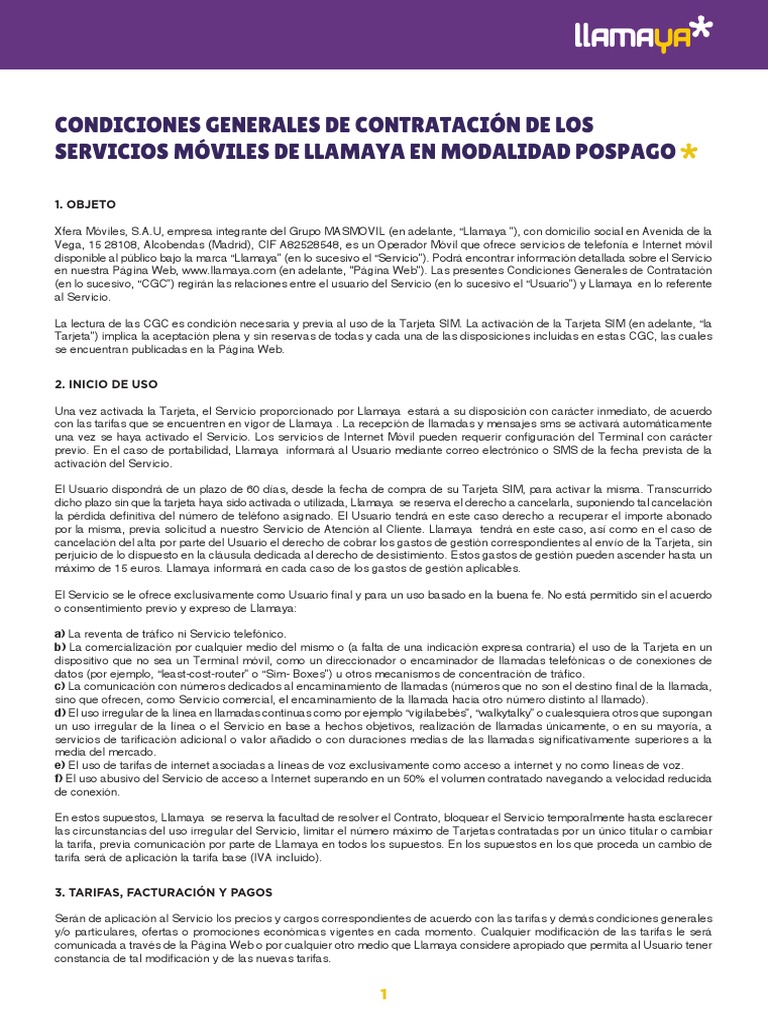 Xfera Móviles, S.A.U, empresa integrante del Grupo MASMOVIL (en adelante, “Llamaya ”), con domicilio social en Avenida de la