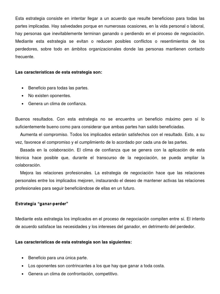 Esta estrategia consiste en intentar llegar a un acuerdo que resulte beneficioso para todas las