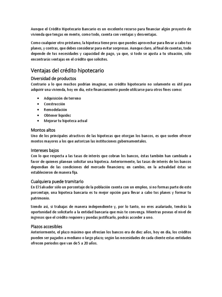 Aunque el Crédito Hipotecario Bancario es un excelente recurso para financiar algún proyecto de