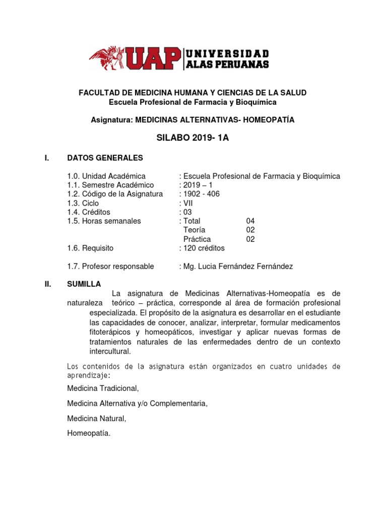 Asignatura: MEDICINAS ALTERNATIVAS- HOMEOPATÍA