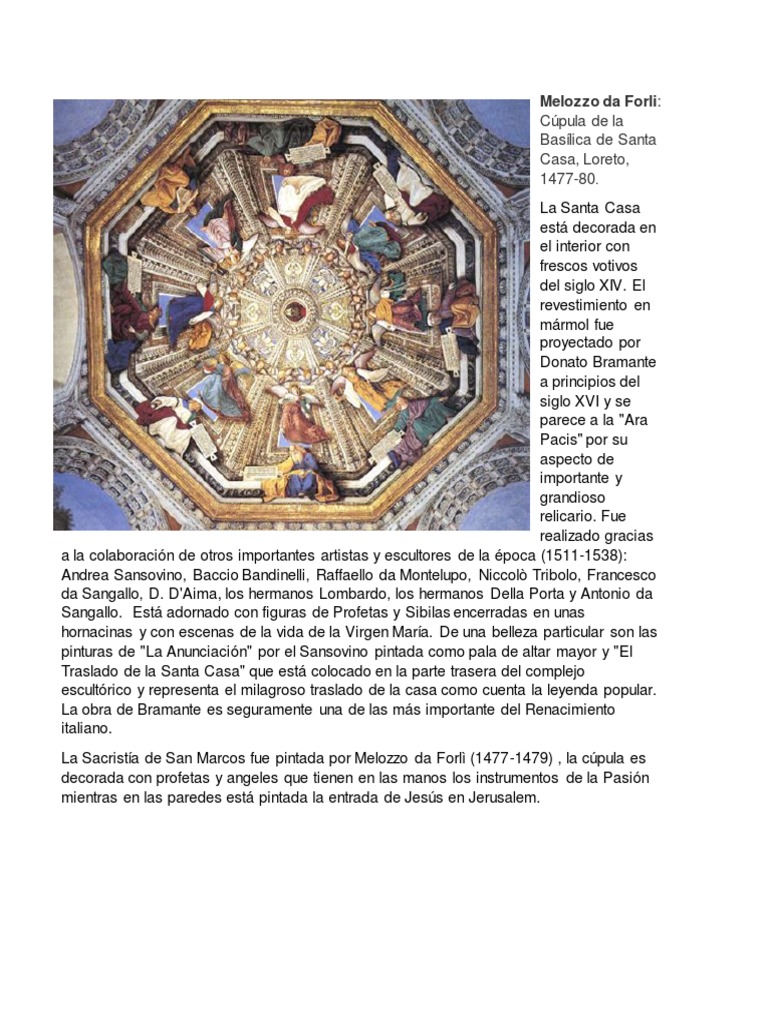 La Sacristía de San Marcos fue pintada por Melozzo da Forlì (1477-1479) , la cúpula es