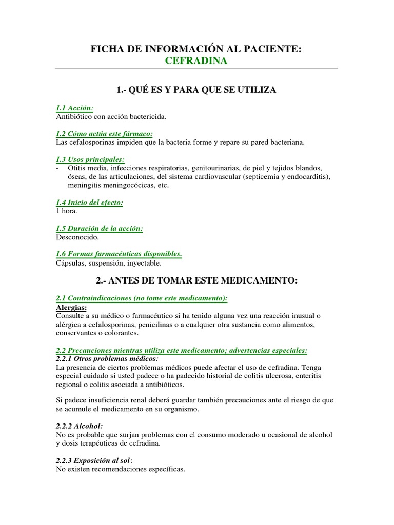 Si estima que la acción de cefradina es demasiado fuerte o débil, comuníqueselo a su