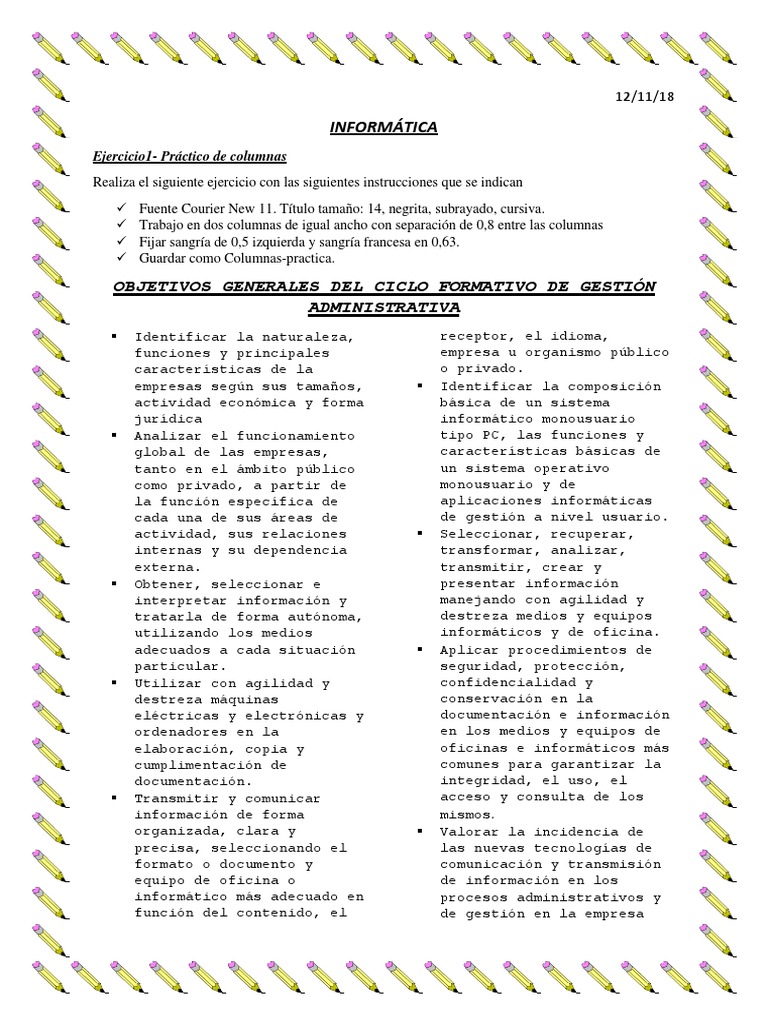 El texto en columnas de igual ancho, separadas por 1 cm y con líneas entre columnas.