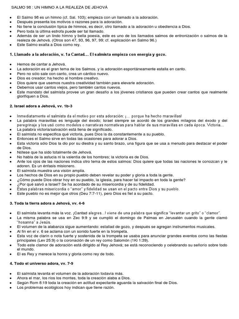 El Salmo 98 es un himno (cf. Sal. 103); empieza con un llamado a la adoración.