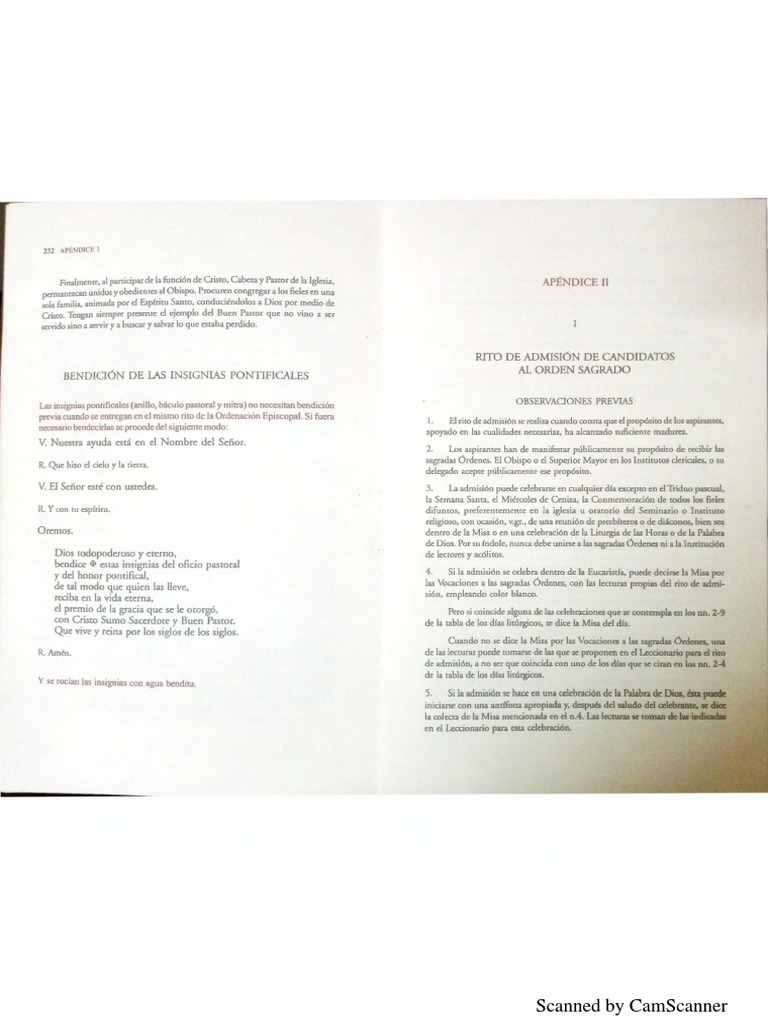 previa cuando se entregan en el mismo rito de la Ordenación Episcopal. Si fuera 1. El rito de admisión se realiza cuando consta que d propósito de los aspirante&,