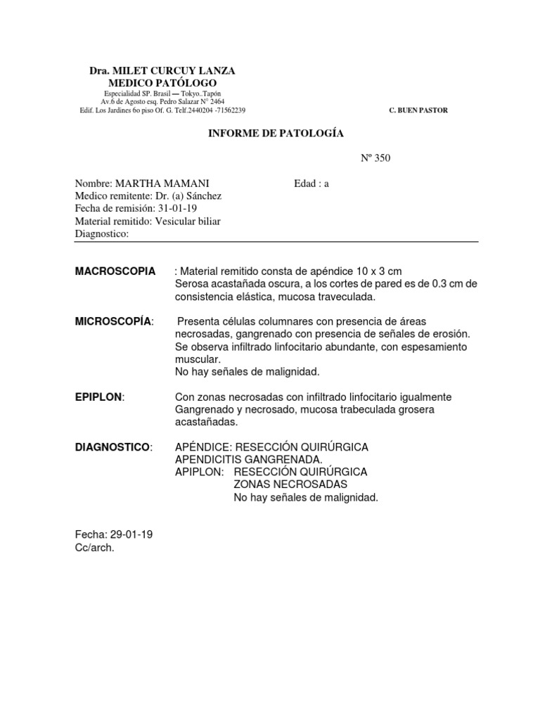DIAGNOSTICO: APÉNDICE: RESECCIÓN QUIRÚRGICA