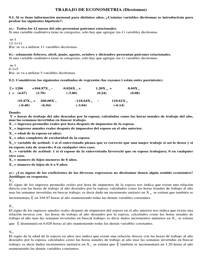 9.2. Considérese los siguientes resultados de regresión (las razones t están entre paréntesis):