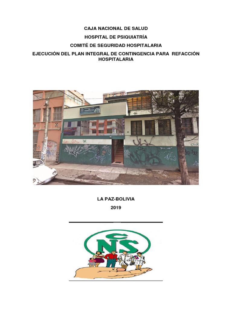 Plan de contingencia para Refacción del Hospital de Psiquiatría CNS, con la finalidad