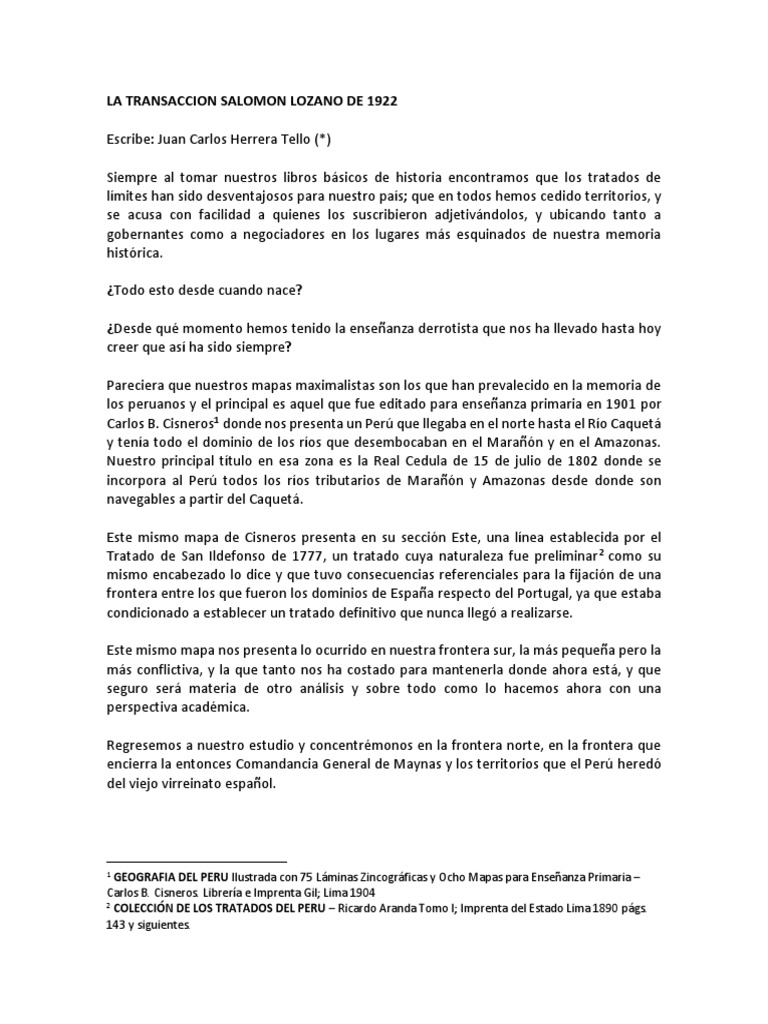 resultado el Tratado Salomón Lozano es “un capitulo aun impenetrado, acerca del cual