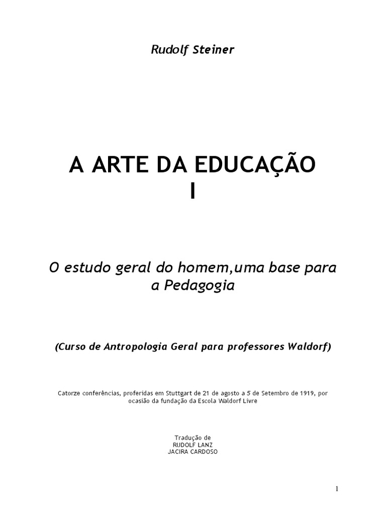 Waldorf Livre a ser fundada. Pois sua arte educacional é construída sobre o conhecimento