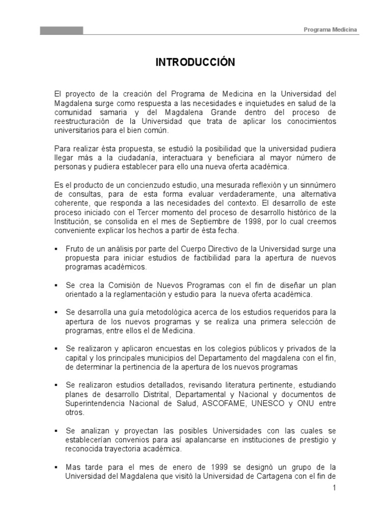 1. JUSTIFICACIÓN DEL PROGRAMA DE MEDICINA