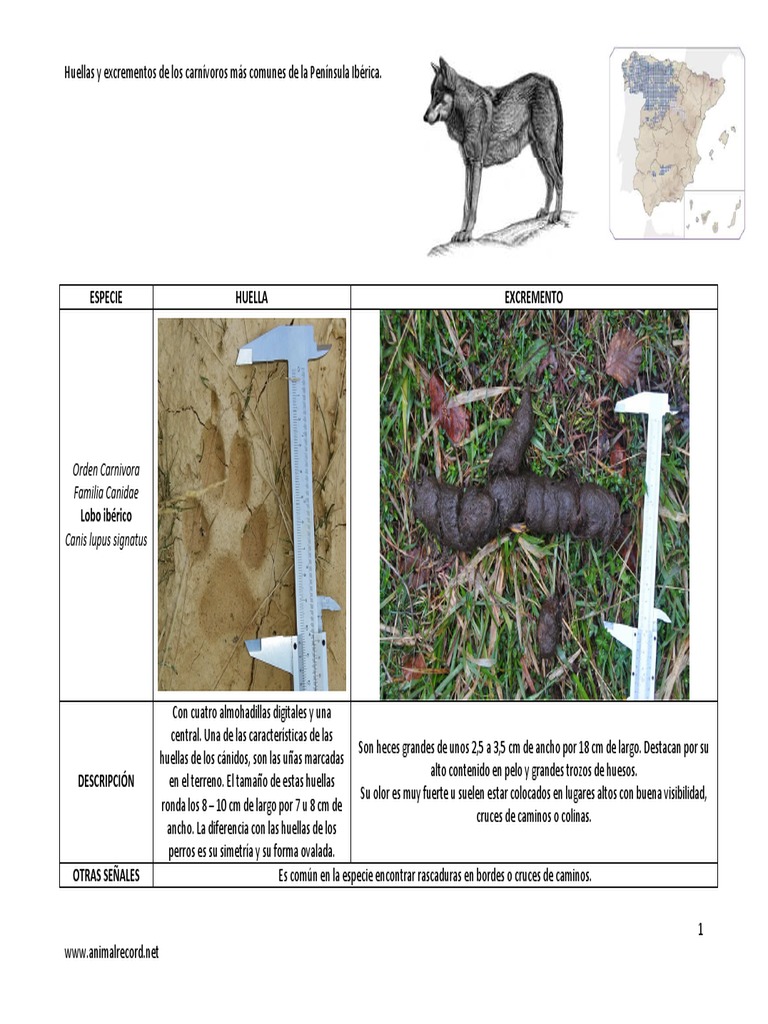 Huellas y excrementos de los carnívoros más comunes de la Península Ibérica.