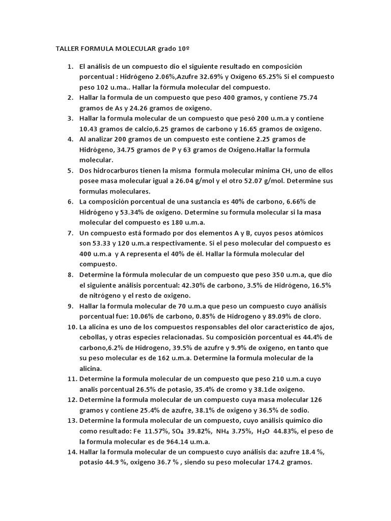 13. Determine la formula molecular de un compuesto, cuyo análisis químico dio